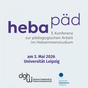 HebaPäd 2026 – 3.Konferenz zur Pädagogischen Arbeit im Hebammenstudium Kooperationsveranstaltung von DHV und DGHWi Fortbildungsstunden: 8 FB Berufspädagogik 03 Mai 9:30 - 17:30 Studienzentrum (Haus E) der Medizinischen Fakultät Leipzig Liebigstr. 27, 04103 Leipzig